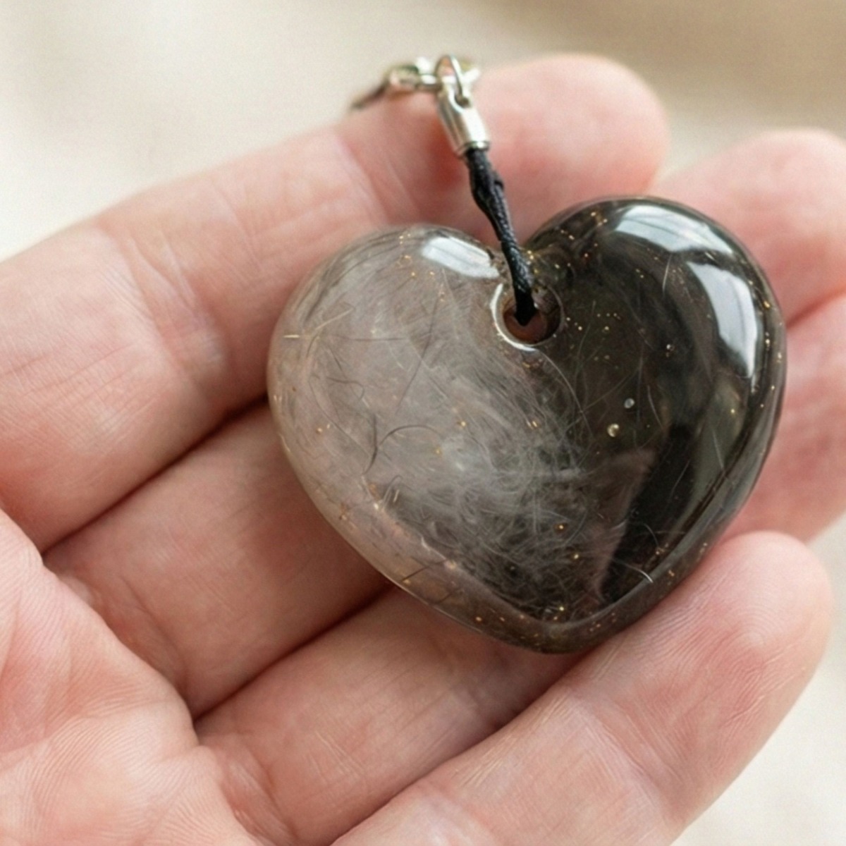 Każde serce tworzę z ogromną precyzją i szacunkiem do powierzonego mi materiału. Sierść zostaje artystycznie wkomponowana w krystalicznie czystą żywicę, co pozwala zachować jej naturalny kolor i strukturę. Całość wykańczam na wysoki połysk, nadając ozdobie elegancki i profesjonalny wygląd.